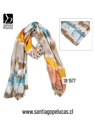 PAÑUELO ESTAMPADO BEIGE/CELESTE/MOSTAZA
