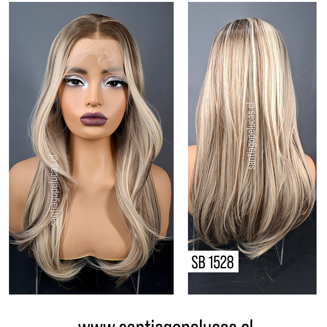 Peluca lace frontal larga lisa. Este modelo viene con área de libre partidura, se puede peinar en cualquier dirección.